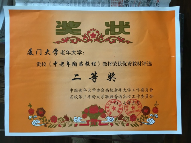 会议还进行了高校老年大学精品教材和优秀教材的评审。我校老年大学任课教师吴在庆教授主编的《中国古典诗词解读与鉴赏》获精品教材一等奖,赵亮老师主编的《中老年陶笛教程》获优秀教材二等奖。近年来,厦大老年大学遵循“增长知识、丰富生活、陶冶情操、促进健康、服务社会”的办学宗旨,大胆改革创新、优化教学管理、重视教材建设,不断强化办学质量,满足学员们多样化的学习需求,取得了一定的成绩。今后,厦大老年大学会深入学习贯彻此次会议精神,继续发挥示范、引领、辐射作用,服务校内及周边社区老同志,努力提升老年大学的办学质量和水平。