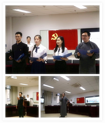 “恰同学少年,风华正茂;书生意气,挥斥方遒……”在一曲悠扬的配乐声中,来自本科生第一党支部的党员向新楚身着麻布长衫,深情地朗诵了毛泽东同志32岁离开故乡韶山时所作的《沁园春·长沙》。之后,其他党员又分别朗读了周恩来同志的《送蓬仙兄返里有感》,以及习近平总书记37岁时任福州市委书记所作的《念奴娇·追思焦裕禄》。演绎经典名篇,回顾历史岁月。活动借鉴央视最近热播节目《朗读者》的形式,通过诵读党和国家领导人的在青年和成长时期写下的著名诗篇,抒发和体会伟人救国救民、为国立功的远大志向以及国家领导人执政为民、造福百姓的远大抱负与宏愿。