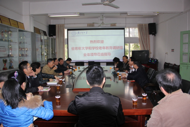 3月17日上午,福建省老年大学副校长谢道勇、省老年大学协会秘书长许吉友带领的省老年大学和学校老年教育调研组一行11人赴我校老年大学调研,厦大老年大学校长陈国凤、离退休工作处处长郑建华、副处长周一钦等陪同调研交流。