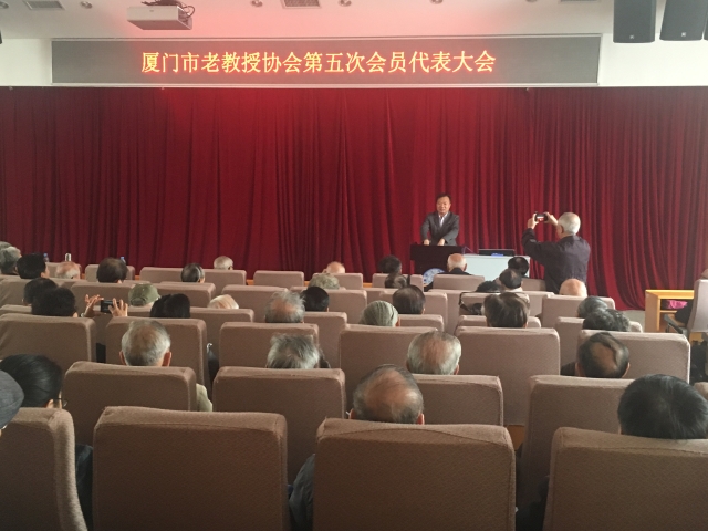 12月24日上午,市老教授协会第五次会员大会在厦门大学化学报告厅顺利召开,共有129位协会会员代表参会。大会由会长潘世墨主持,厦门大学党委书记张彦、厦门市委教育工委副书记林佳源以及厦门市民政局民间社会组织管理局副局长吴绵绵也应邀参会并致辞。