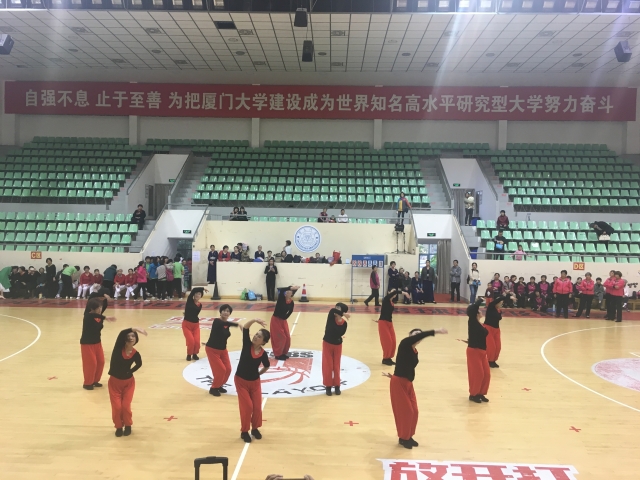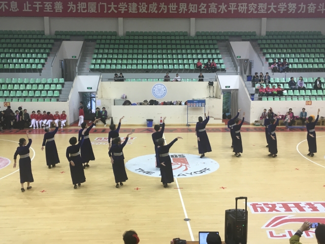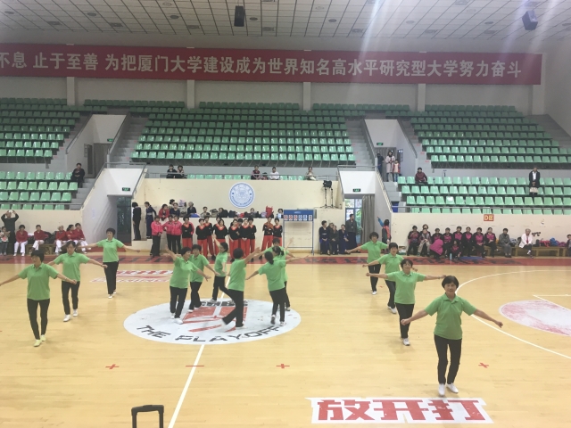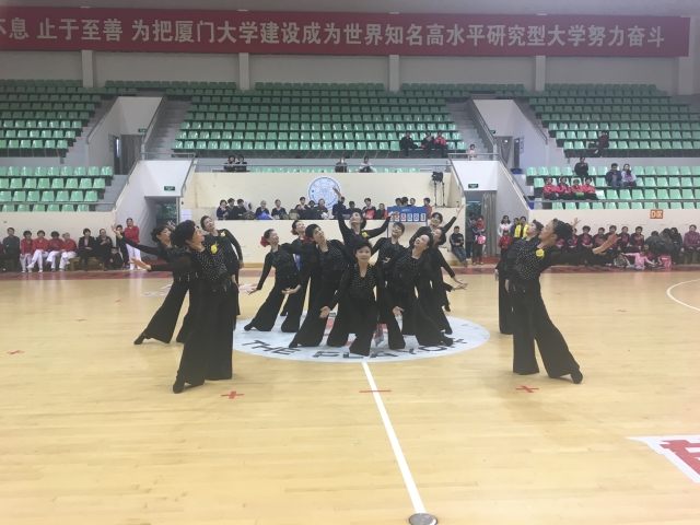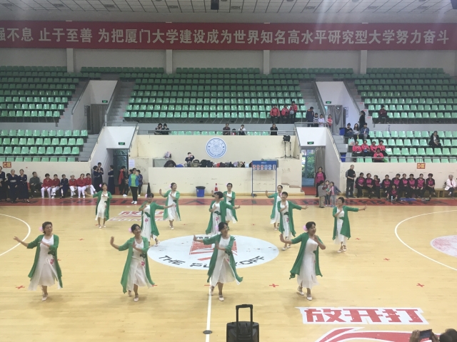 12月24日下午,由厦门大学离退休工作部(处)主办、厦大老体协承办的厦门大学第二届广场舞交流展示活动在明培体育场拉开帷幕。来自厦大校园各早晚锻炼点,及老年大学广场舞班学员共12支队伍,155名退休老同志参加了本次交流展示。花团锦簇的演出服装、轻快热烈的舞蹈乐曲和老人们的欢声笑语,仿佛吹散了冬日的阴沉,整个体育馆内温暖似阳春三月。