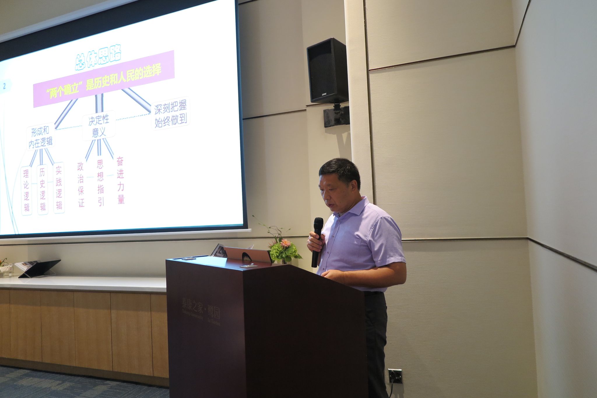 苏劲教授还谈到,我们要做到思想上高度认同,不断加深对“两个确立”决定性意义的认识,把“两个确立”转化为“两个维护”的思想自觉;要做到政治上坚决忠诚,坚持以党的政治建设为统领,把坚持党的政治领导、做到“两个维护”放在首位;要做到行动上始终维护,把“两个维护”体现到各项制度规定中,在实际行动上见真章、求实效,切实把“两个确立”转化为坚决做到“两个维护”的行动自觉。