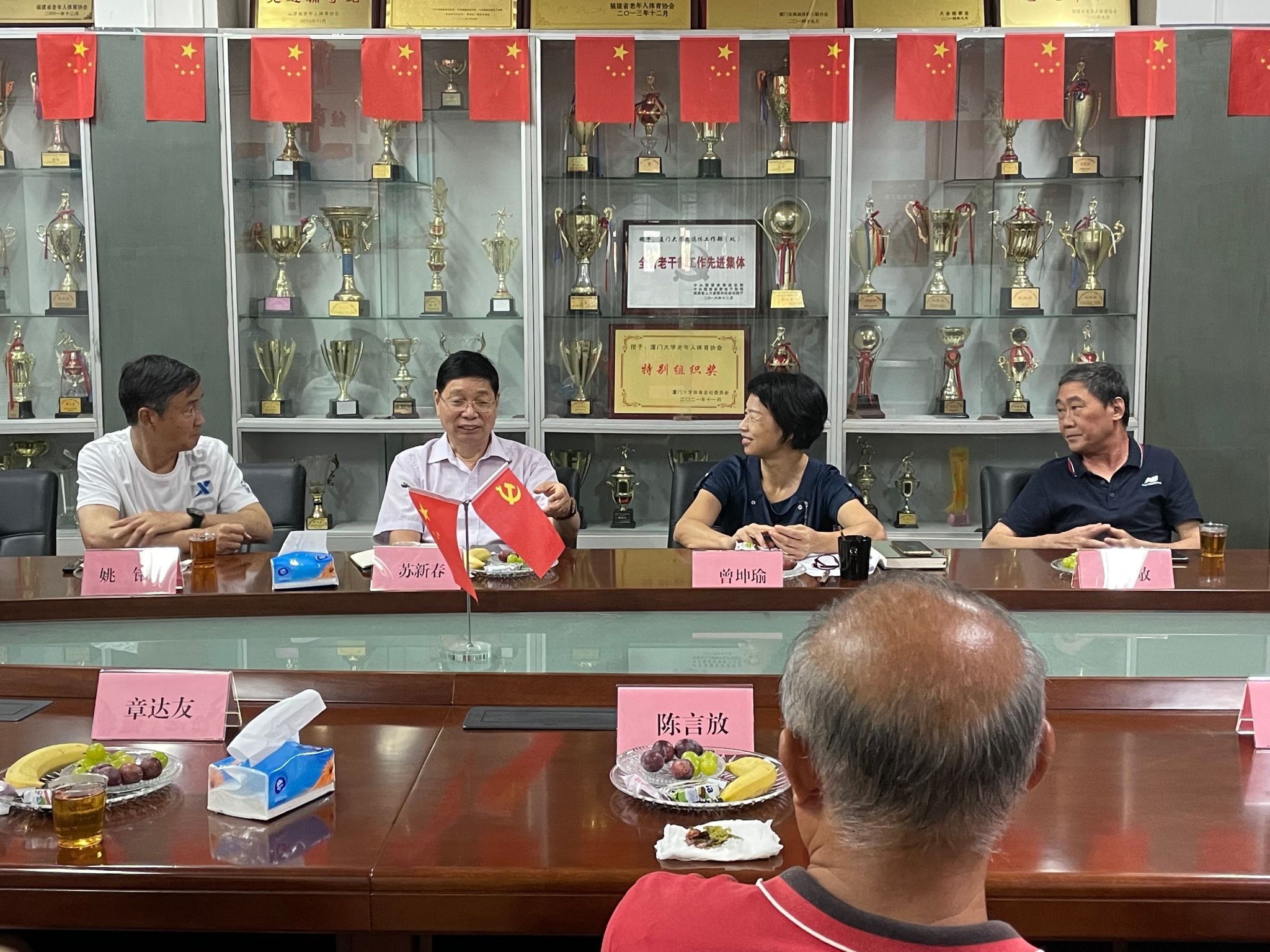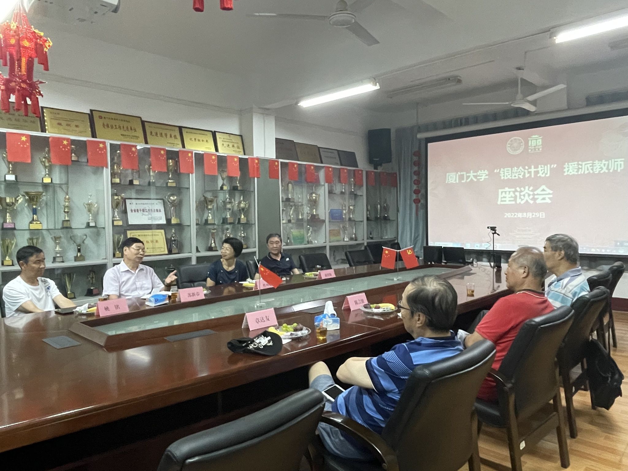 8月29日下午,厦门大学“银龄计划”援派教师座谈会在南光8号楼208会议室召开。人文学院苏新春、艺术学院陈言放、管理学院章达友、化学化工学院黄传敬、航空航天学院姚铭、生命科学学院刘润忠、田惠桥等7位参加2022-2023年度“银龄计划”的退休教师参加座谈会。其中,今年续聘的刘润忠老师仍在喀什大学未返厦,因而在线上参加。座谈会由离退休工作部部长曾坤瑜主持。