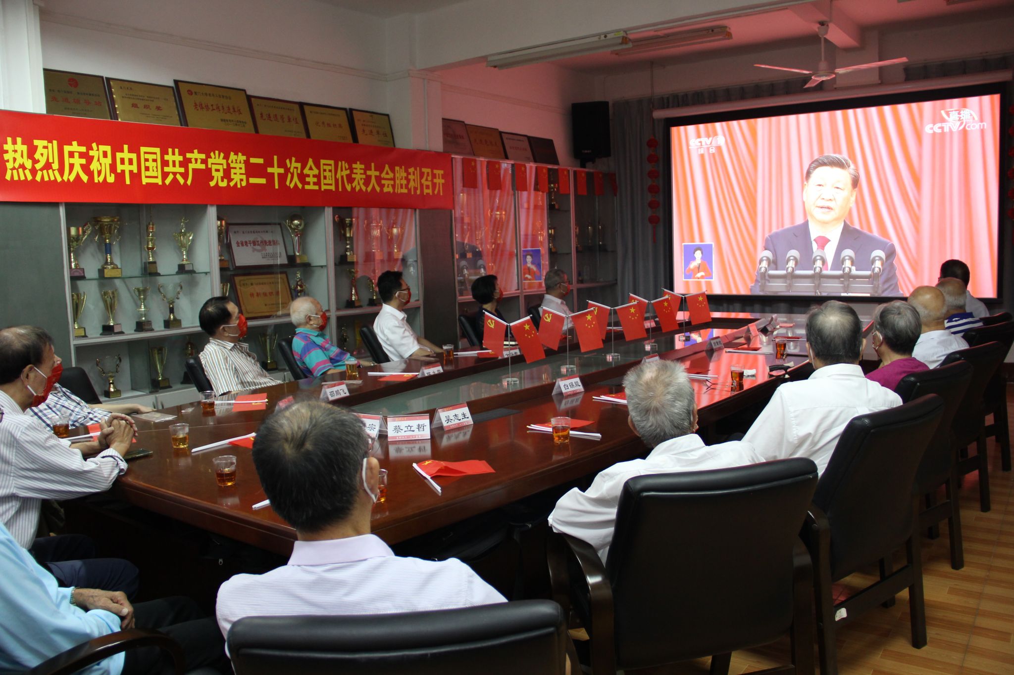 学校在思明校区南光8号楼208会议室设立离退休分会场。校党委常委、组织部部长孙理同志与离休干部、涉老组织骨干、各学院老党员代表等20多名老同志集中收看直播。各位老党员们聚精会神聆听习近平总书记的报告,边听边记,不时点头赞叹,对报告内容报以热烈掌声,激动与自豪之情溢于言表。会后,老同志们纷纷表示,要认真学习、深刻领会报告精神,用党的最新理论成果武装头脑,继续做到听党话、跟党走。