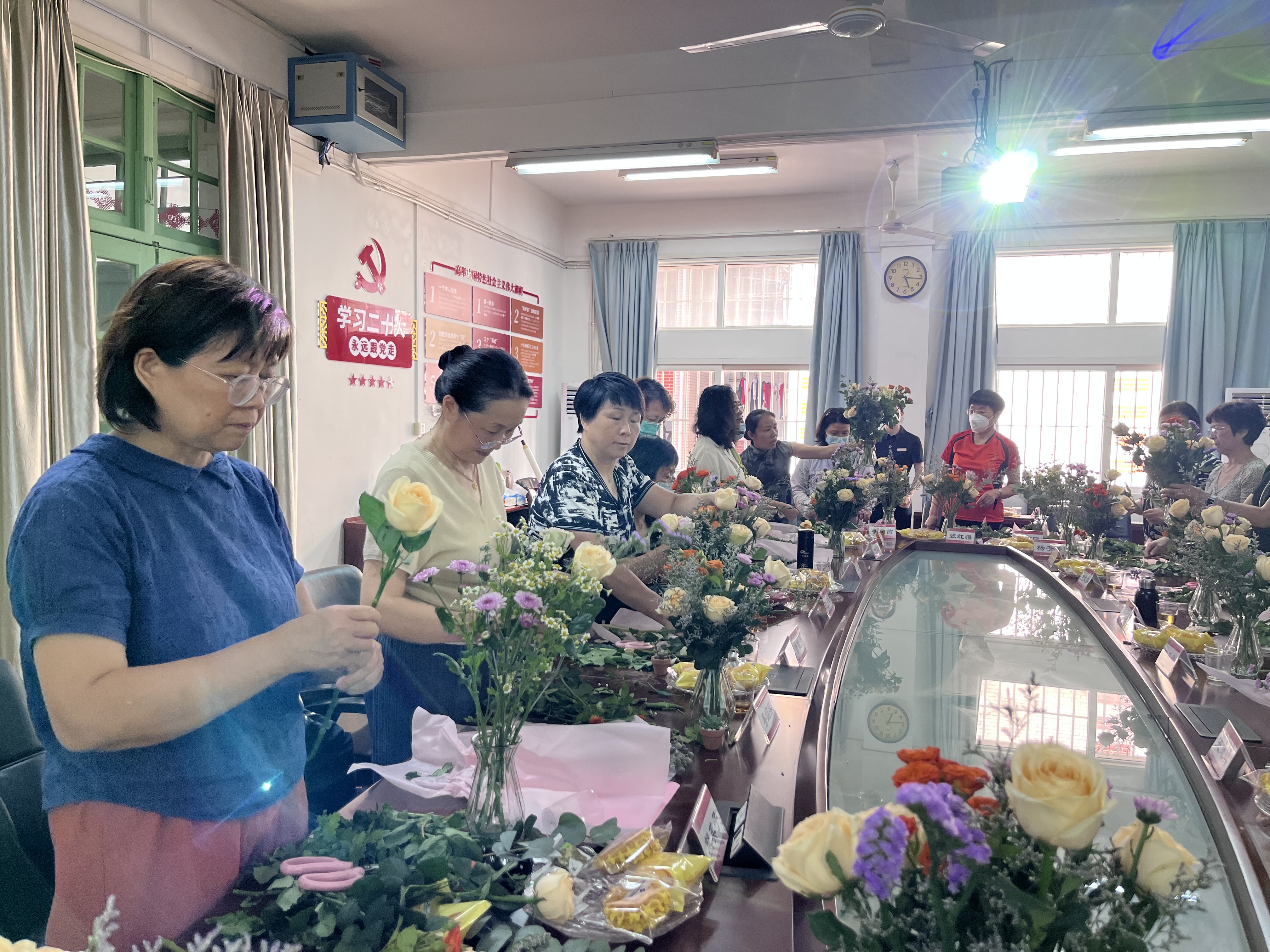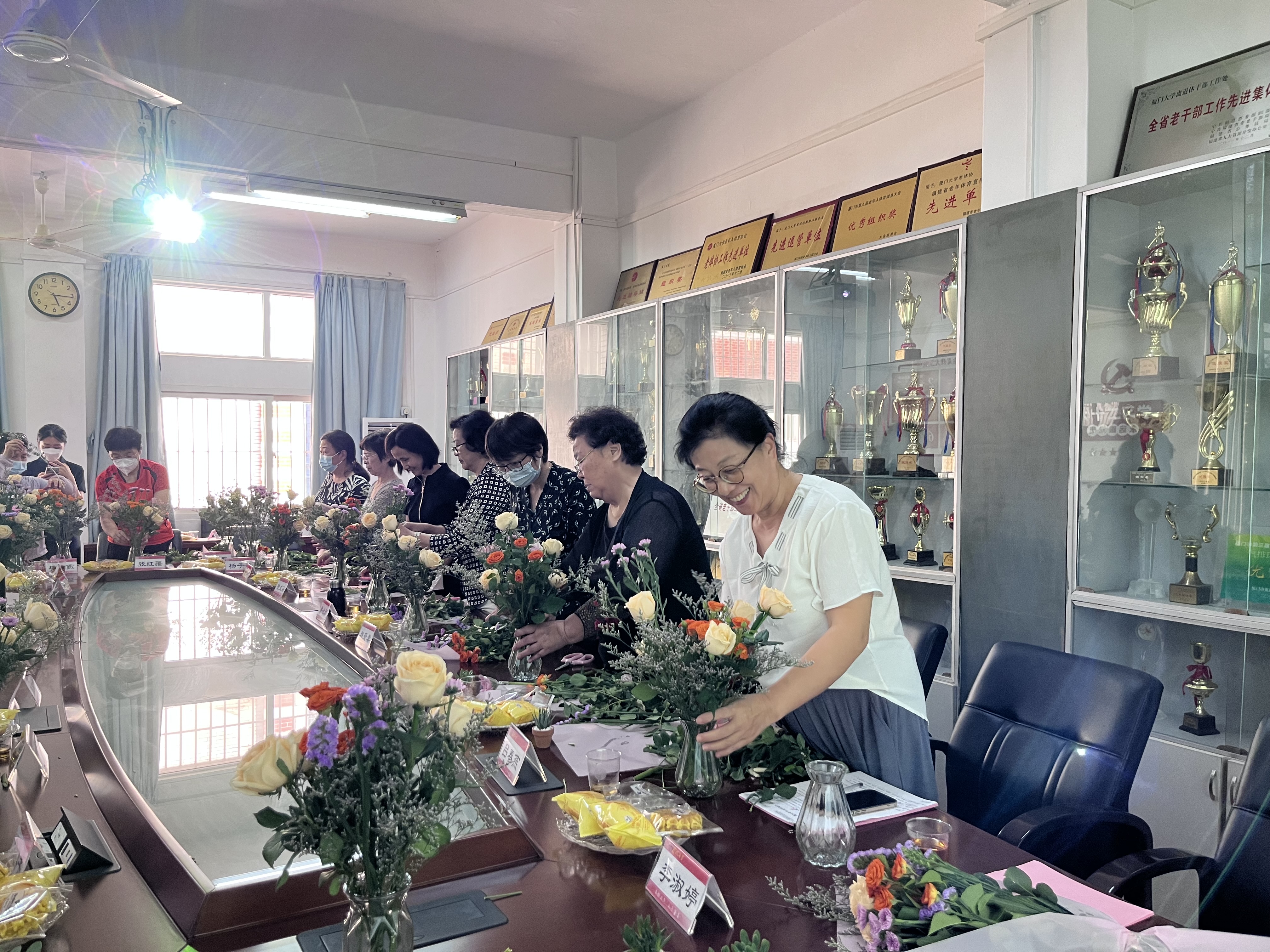 活动最后安排了插花DIY。跟随着花艺老师的讲解,大家将一枝枝鲜花在花瓶中组合成各式各样的精美花束,并合影留念。分享会在一片欢声笑语中顺利结束。