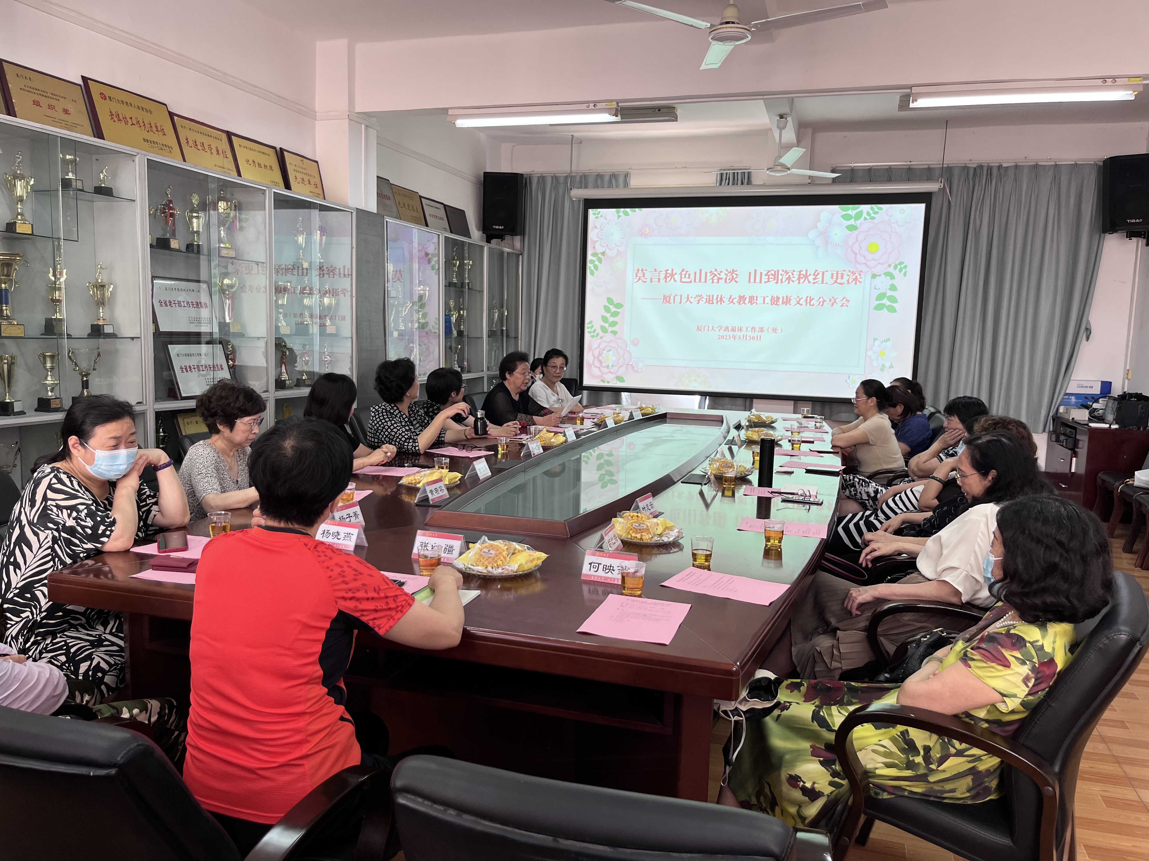 为进一步帮助退休人员科学安排工作和生活,增强健康意识,树立良好的生活心态和观念,以积极乐观态度面对人生新的阶段,离退休工作处于5月30日下午在南光八208会议室,举办了“莫言秋色山容淡 山到深秋红更深”——厦门大学退休女教职工健康文化分享会。近20位近年退休的女教职工代表围绕退休后的工作生活安排和情绪心理调节方法等展开交流分享。分享会由离退休工作处副处长贺文英主持。