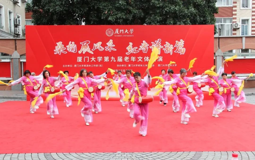 12月13日上午,“桑榆展风采 红耆谱新篇”厦门大学第九届老年文体展演在三家村学生活动广场举行。本次活动由离退休工作部主办,老年人体育协会和老年大学承办。离休干部卞守耆,老年大学校长陈国凤,校老体协主席詹心丽,老教授协会会长、校关工委副主任苏劲,离退休工作部部长曾坤瑜,老年大学和老体协班子成员、白城社区党委书记张丽娜,演武社区代表等出席并观看演出。来自老年大学、老体协和白城、演武、上李社区的12支老年文体队120多位老同志参加展演。