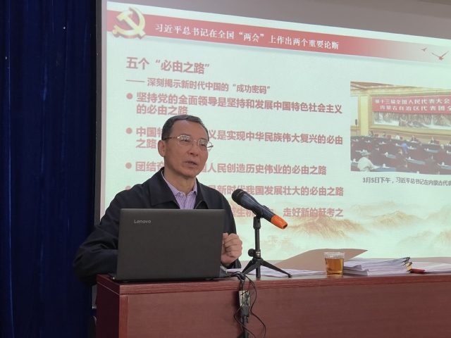 赖虹凯首先传达学习了习近平总书记在全国两会期间的重要讲话精神和“五个必由之路”“五个有利条件”的重大论断。他指出,学习贯彻全国两会精神是当前一项重大政治任务。要围绕实现中华民族伟大复兴,进一步增强胸怀“国之大者”、善谋“党之大计”的责任感使命感,增强服务中华民族伟大复兴的担当意识、服务构建新发展格局的大局意识、走向世界舞台中心的竞争意识。