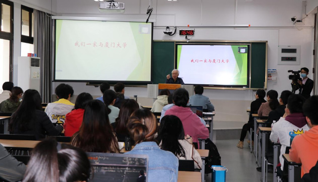3月9日下午,厦门大学离休干部、台湾研究院资深教授陈孔立老师在厦大南强二作《学长忆往:我们一家与厦门大学》讲座,厦门大学档案馆馆长石慧霞主持讲座。讲座吸引了来自不同院系近90余名同学参加。