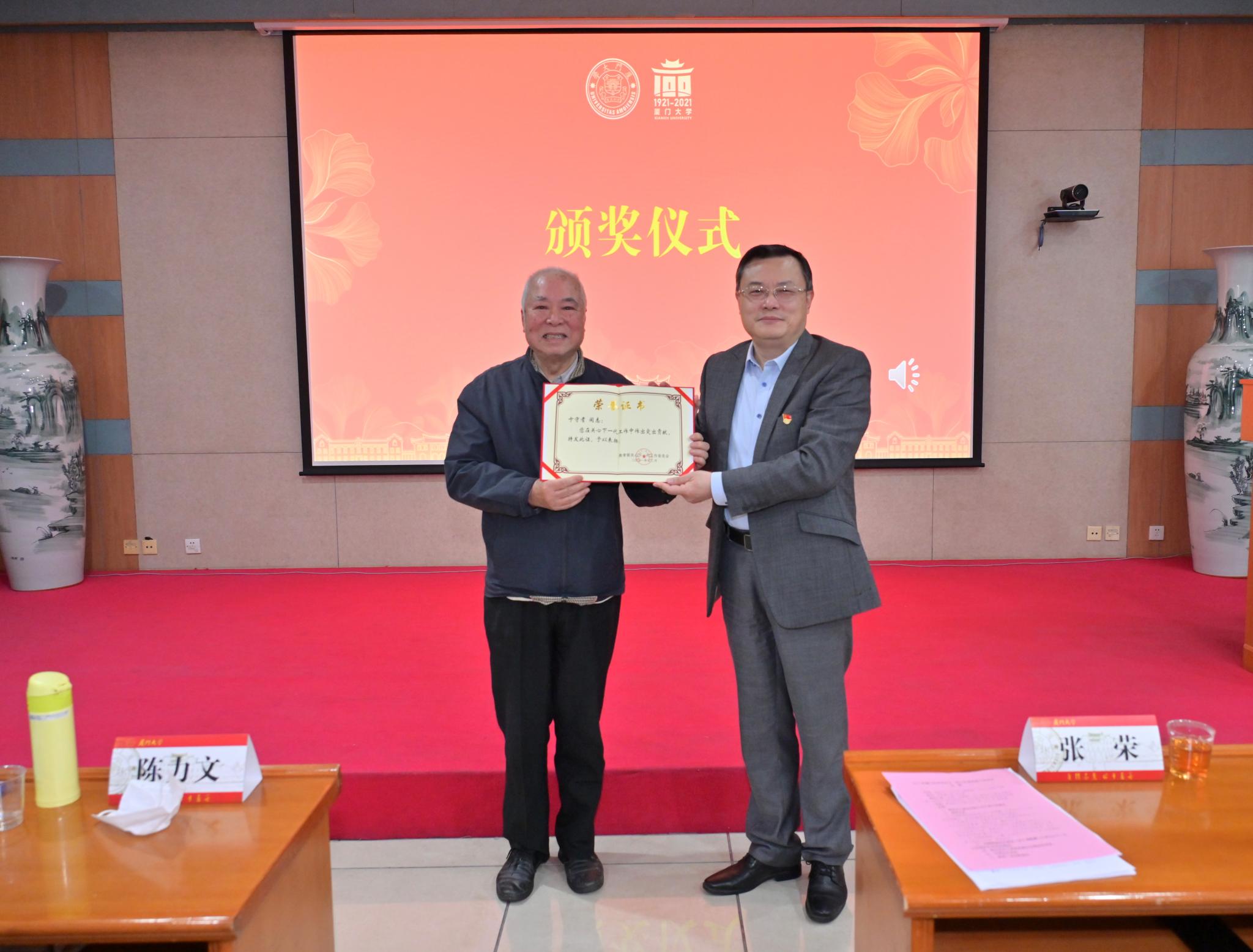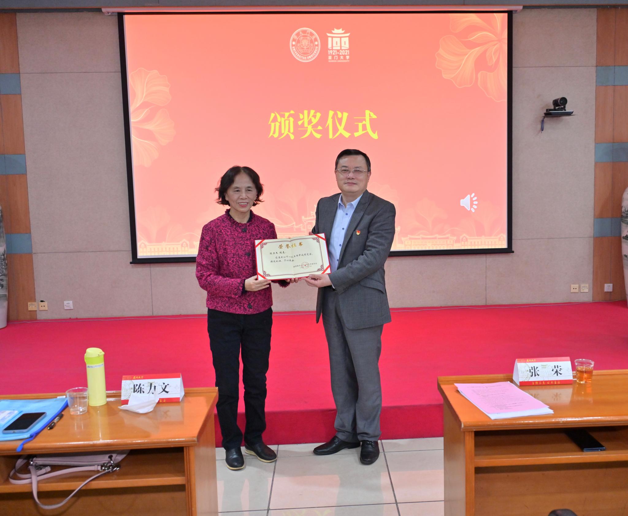 会上,校党委还表扬了8个“厦门大学关心下一代工作先进集体”,9名“厦门大学关心下一代工作突出贡献者”,47名“厦门大学关心下一代工作先进工作者”。张荣、邓朝晖为他们颁奖。