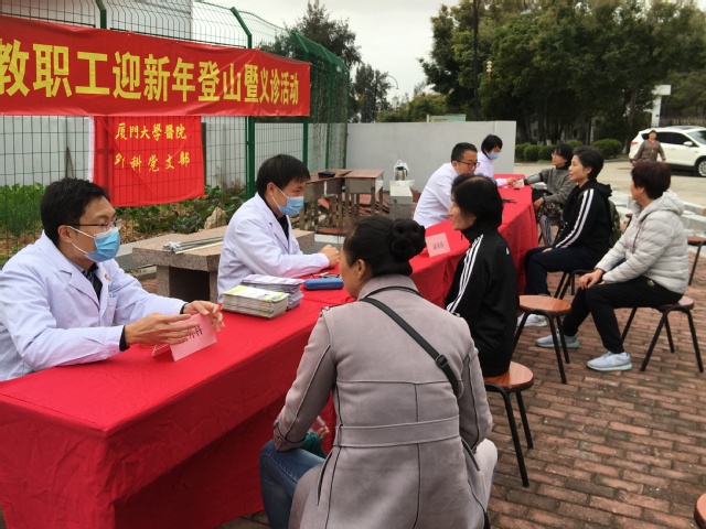 在活动现场,来自厦门大学附属翔安医院的专家和医护人员还开展了健康义诊活动,为参加登山活动的老同志提供医疗保健咨询及测量血压等服务,以实际行动关爱学校离退休教职工的健康。厦门大学医院派出医护人员和救护车到现场提供医疗保障。资产处、保卫处、后勤集团也为此次活动的顺利进行提供了有力支持。
