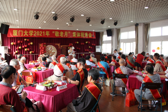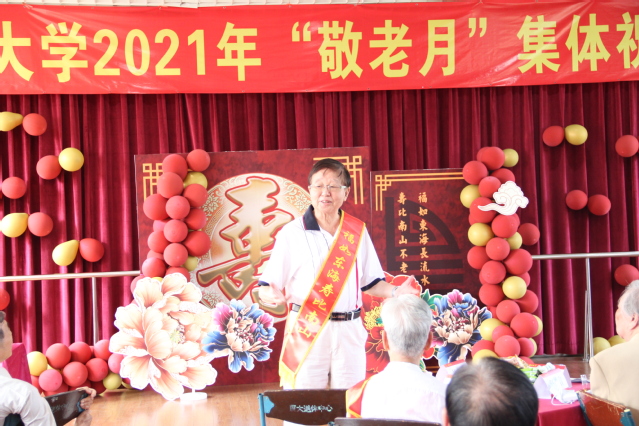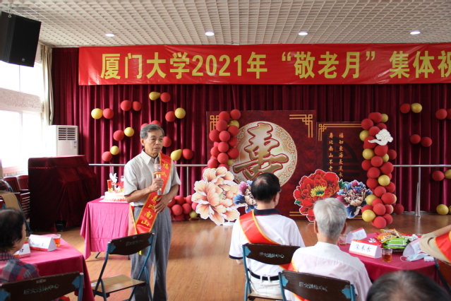 10月20日上午,“厦门大学2021年‘敬老月’集体祝寿会”在南光八号楼5楼多功能厅举行。近40位今年年满80周岁、90周岁的老寿星代表齐聚一堂,共贺寿辰。离退休工作部部长曾坤瑜致祝寿辞,副部长周一钦主持祝寿会。