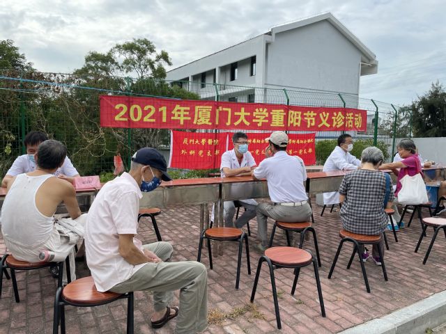 在登山活动出发点——西山校门旁举办的“重阳节义诊活动”受到老同志们的热烈欢迎。翔安医院、厦大医院派出心血管内科、内分泌科、骨外科和泌尿科等科室的专家和医务人员为老同志服务。他们细心地为有需要的老同志测量血压,耐心倾听老同志们提出的医疗保健咨询,认真为老同志解疑释惑、排忧解难,尽心为老同志的健康生活出一份力。