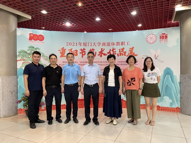 10月14日正值重阳佳节,由离退休工作处主办,厦大书画研究会、厦大老年大学协办的“2021年厦门大学离退休教职工重阳节艺术作品展”在自钦楼一楼展厅正式开展。副校长周大旺,学校老领导卞守耆,校团委书记、新闻传播学院党委书记曾铮,离退休工作处处长曾坤瑜、副处长周一钦,宣传部副部长、美育与通识教育中心副主任兼教务处副处长楼红英,校团委副书记周林琪,厦大老年大学副校长李稻根,以及书画研究会、老年大学的老同志代表到现场观展。