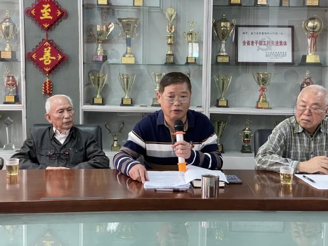 洪海松首先围绕“弘扬嘉庚精神 奋进一流征程”的百年校庆活动主题,阐述了我校通过百年校庆系列活动弘扬厦门大学百年文化、充分展示办学成就、推动学校事业发展的工作理念。接着,他简要梳理了近两年来校庆筹备工作进展和重要时间节点所开展的重点活动情况。最后,他向老同志们预告了校庆期间学校将举办的一系列丰富多彩的主题活动,并欢迎老同志们积极参与其中,感受百年校庆氛围。