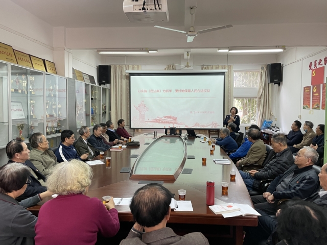 为深入贯彻落实习近平总书记关于“加强民法典重大意义的宣传教育”指示要求,推动学校离退休党支部加强《民法典》的学习宣传,大力营造离退休教职工学法守法用法的良好氛围。12月28日下午,离退休工作部邀请我校法学院教授、民商法专业博士生导师、校党委党校副校长何丽新在离退休处会议室为全校离退休党支部书记作“以实施《民法典》为抓手,更好地保障人民合法权益”的专题报告。