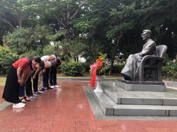 大家首先来到李光前先生的故乡——南安市梅山镇。在光前广场,老同志们向李光前先生铜象敬献花篮并致三鞠躬,表达敬仰和怀念之情。随后,大家拜访了芙蓉基金会并参观了李光前故居纪念馆和光前先生创办的国光中学,在校园里看到了嘉庚先生在上世纪50年代受光前先生之托为国光中学建设进行指导和督建的一批楼宇,特别是新华楼、遵义楼、延安楼,巍然挺立、十分壮观。李光前先生是陈嘉庚先生的女婿,也是嘉庚精神的忠诚追随者。从20世纪30年代起,他就长期支持陈嘉庚先生创办的厦门大学、集美学村。新中国成立后不久,他捐资600万港币,由嘉庚先生亲自主持建成了包括建南大会堂楼群在内的24座楼宇,为厦门大学的建设发展作出重大贡献。李光前先生爱国爱乡、兴学育才、服务社会的博大胸怀和历史贡献,值得后辈学子永远纪念和学习。