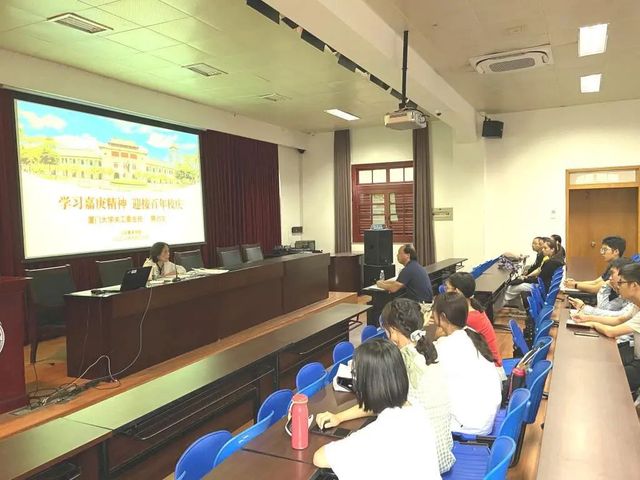 陈力文十分熟悉校主陈嘉庚先生的事迹,但是她并未从陈嘉庚先生“卖大厦建厦大”讲起,而是从我们所在的成智楼和建南楼群开始,娓娓道出校主陈嘉庚与厦门大学的许多故事。她讲到,厦门大学选址在这个背靠山面朝海、与金门隔海相望同时又曾是郑成功练兵场的地方意义重大,充分体现了校主的高瞻远瞩;她讲到,1937年陈嘉庚先生将他苦心建设多年的厦门大学捐给政府的时候,厦园里没有一处留有他的名字,充分体现了校主的无私奉献;她讲到,1945年日本投降后,嘉庚先生脱险归来,重庆各界群众决定举行庆祝大会,毛主席专门从延安送来“华侨旗帜,民族光辉”的条幅,给予陈嘉庚先生崇高的评价。2014年陈嘉庚先生诞辰140周年之际,习近平总书记写信同样高度评价了陈嘉庚是“华侨旗帜,民族光辉”,并号召我们要“弘扬嘉庚精神,共圆民族复兴之梦”。我们即将迎来厦门大学的百年校庆,在我们跟随陈力文老师回顾过去的同时,更要立足当下,谋划未来。作为公共事务学院的学生,只有把弘扬嘉庚精神和自己的专业学习更好地结合,在未来才能更好地的服务社会和人民。