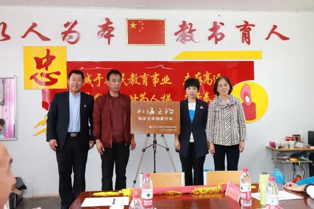 在好水乡,厦门大学关工委老同志和隆德县委常委、副县长马龙、校团委副书记周林琪和海洋与地球学院党委副书记郑碧娇,同厦大海洋与地球学院师生、好水乡中心小学领导、师生代表与县乡有关领导一起参加了在中心小学举行的海洋文化创意空间揭牌仪式。
