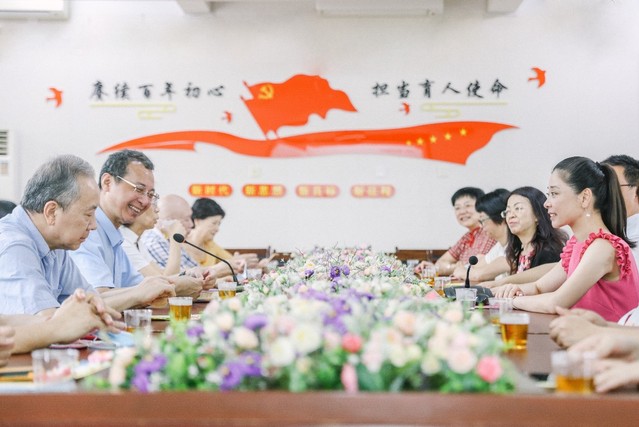 关工委一行同演武小学的老师们展开座谈。大家首先观看了学校课间操的视频,感受到孩子们的阳光活力、朝气蓬勃。校长王志勤向大家介绍了学校的办学成绩、师资队伍建设和特色办学文化,并感谢厦门大学关工委长期以来对演武小学发展的关心与支持。