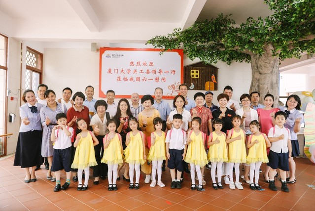 童心灿烂,笑语盈盈。5月31日上午,在“六一”国际儿童节来临之际,厦门大学关心下一代工作委员会常务副主任赖虹凯,顾问陈力文、黄如彬,副主任白锡能、苏劲、邵鹏飞、郑冰冰等校关工委班子成员,会同学生工作部部长李峰、离退休工作部部长曾坤瑜、资产经营有限公司党委书记黄宇霞、宣传部副部长洪春生、校工会副主席余炳建、校团委副书记周林琪、后勤集团党委副书记邓泽君、附属翔安医院关工委常务副主任史虞龙和医院体检部主任王瑜等职能部门领导、工作人员分别到厦门大学幼儿园和厦门大学附属演武小学开展走访慰问活动。
