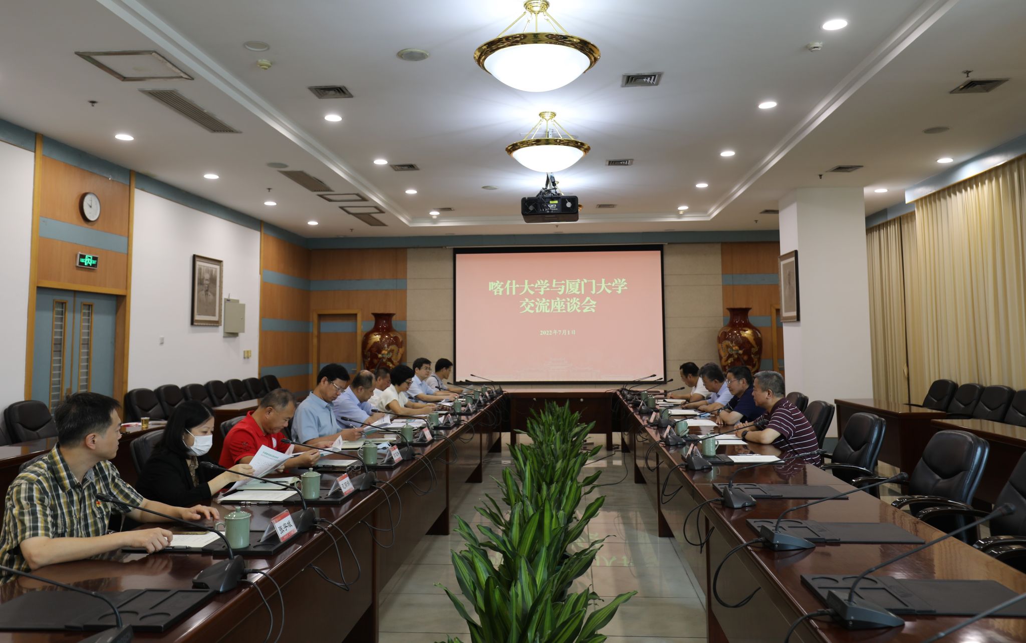 7月1日上午,喀什大学与厦门大学交流座谈会在颂恩楼215召开。两校领导和有关单位负责人就进一步贯彻落实“高校银龄教师支援西部计划”,以及教育教学、科学研究和师资队伍建设相关议题展开交流研讨。我校党委常务副书记林东伟,喀什大学党委书记薛继海,副校长杨清华、赵斌出席会议。