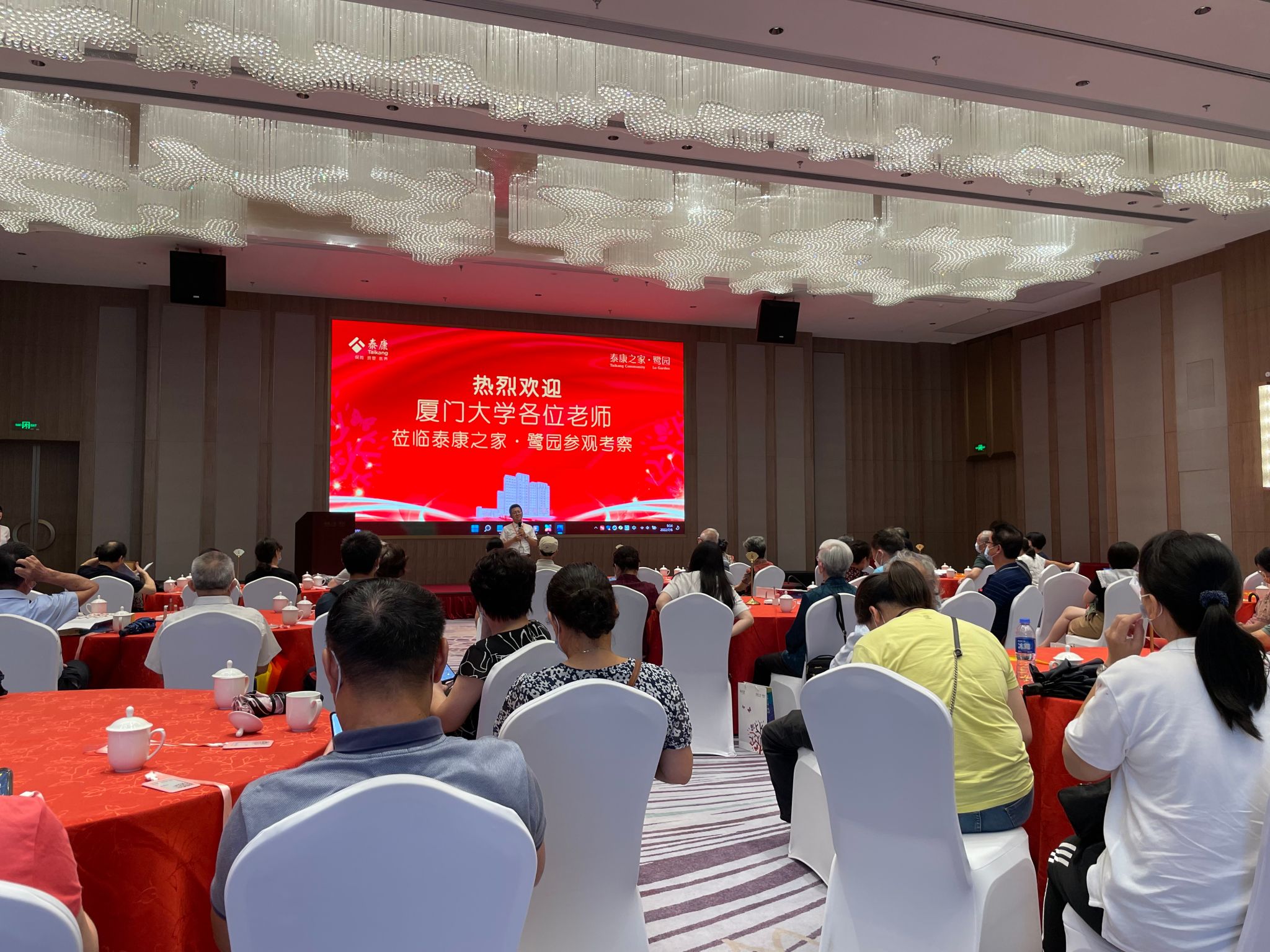 泰康之家·鹭园坐落于厦门市同安区,是泰康保险集团旗下国际标准医养活力养老社区,可提供CCRC退休生活一站式持续照料服务。接待人员为众人讲解鹭园社区的基本情况并带领众人参观了样板间。在会议室,接待人员通过现场直播带大家参观了生活区的情况。参观结束后,海外教育学院退休老师薛淑贞和人文学院退休老师李如龙作为在住居民代表先后分享了他们在鹭园居住的感受。两位老师都对鹭园社区的养老服务表示认可,并表示鹭园是老年人养老一个很好的选择。