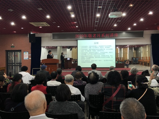 本次讲座共有两个主题。范晓琼医生首先结合自己多年的临床经验,通过生动详实的例,为老同志们介绍了樱桃状血管瘤、带状疱疹、脂溢性角化病等10种老年人常见皮肤病的病因、具体症状以及防治方法。随后,曹彪医生从尿频、尿急等症状入手,深入分析了不同性别老年人几类泌尿系统疾病的病因,着重介绍了前列腺增生、前列腺癌等疾病的检测方法、临床表现,以及药物治疗、外科治疗的方法,并提醒老同志注意饮食保健,以减少或降低患病风险。