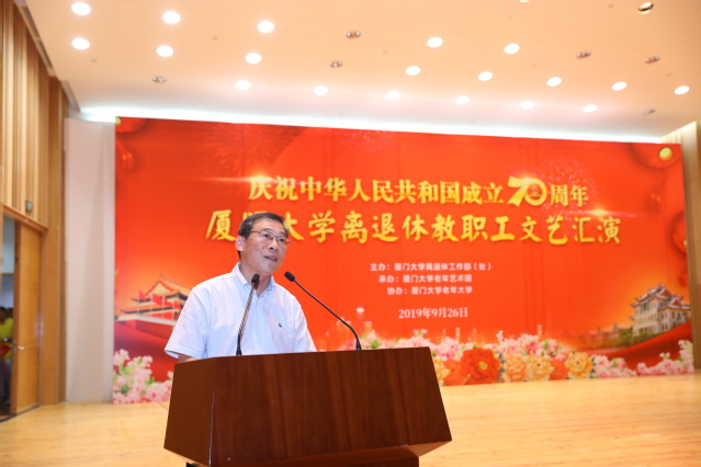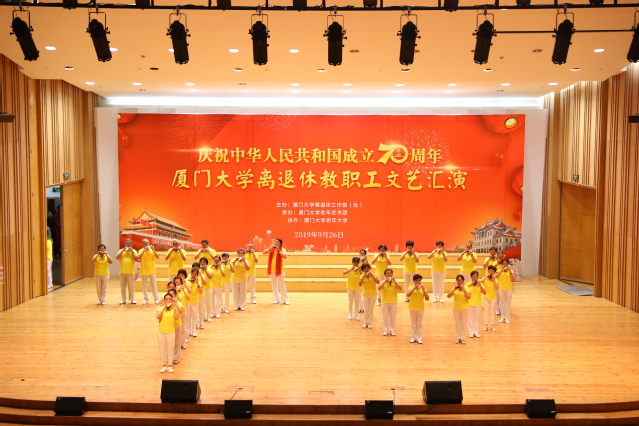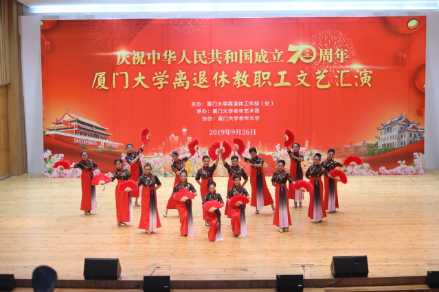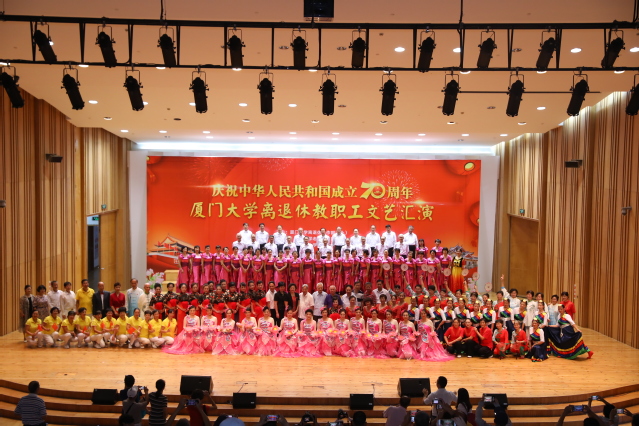 9月26日上午,由厦门大学离退休工作部(处)主办、老年艺术团承办、厦大老年大学协办的“庆祝中华人民共和国成立70周年”厦门大学离退休教职工文艺汇演在科学艺术中心音乐厅举行。厦门大学党委副书记、副校长李建发,学校老领导卞守耆、陈国凤、詹心丽,学校相关部门领导和涉老组织负责人出席并观看演出。离退休教职工代表及老年大学学员约500人到场观看演出。