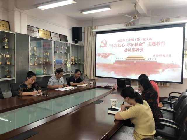 9月19日下午三点,离退休工作部(处)党支部于南光八208会议室召开“不忘初心、牢记使命”主题教育动员部署会,部署“不忘初心、牢记使命”主题教育实施方案。会议由离退休工作部(处)党支部书记戴岩主持,支部全体党员参加。