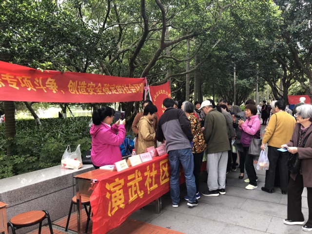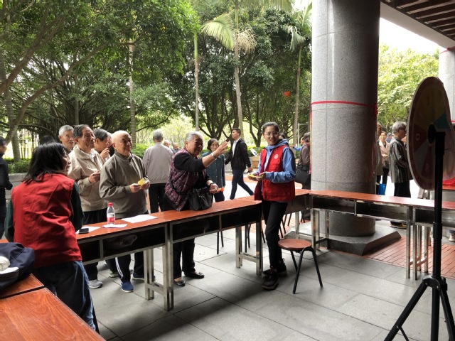 身穿红色马甲的厦大“益家人”助老社团学生志愿者,与身着黄绿马甲的白城、演武社区助老社工一同,组成一道“多彩”的风景线,穿梭在游园现场的每个角落,协助维持现场秩序、主持各类游戏项目,用灿烂的笑容、热情的服务表达自己的敬老爱老之情。游园现场还有来自厦门大学附属翔安医院的专家们,为老同志们提供义诊服务;来自演武、白城社区居委会的工作人员解答老同志们在计生、民生等问题上的疑惑;来自厦大医院的医护人员做好现场应急医疗保障。游园活动还得到学校资产处、保卫处等相关单位的大力支持。