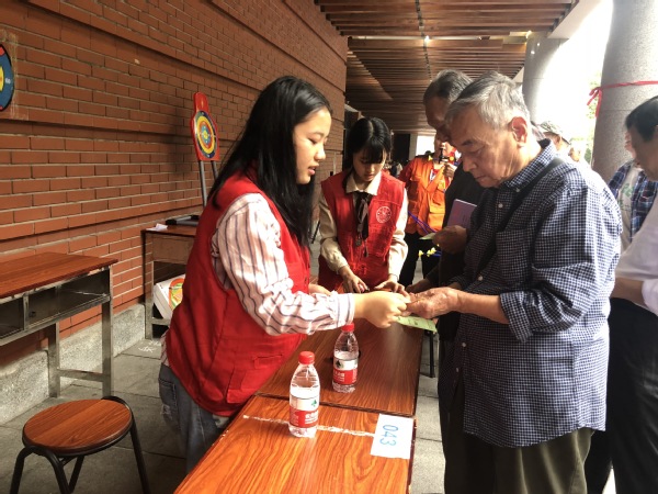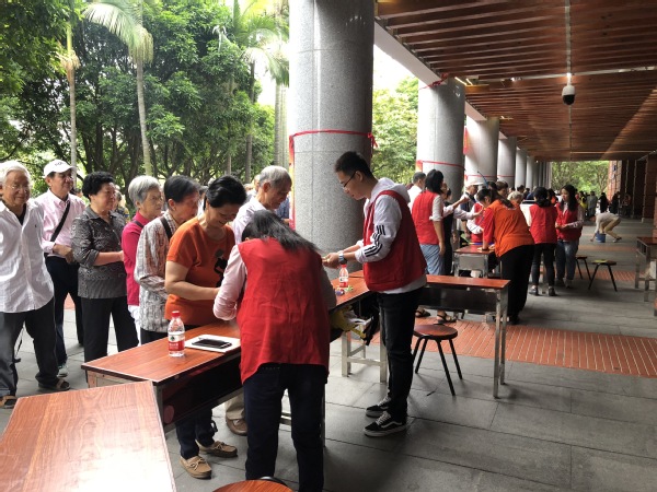 来自校内、校外各个单位和团体的志愿者们也是游园活动中靓丽的风景线。身穿红色马甲的“益家人”学生助老社团学生志愿者和人文学院学生志愿者带着灿烂的笑容热情为老同志服务。厦门大学附属翔安医院各个科室的十多位专家为厦大老同志提供医疗义诊服务;厦大所处的演武和白城两大社区居委会的工作人员为老同志们提供计生、民生等咨询服务;大学路派出所的民警们在现场进行防诈骗宣传,提醒老同志提高防范意识,避免财物损失;还有来自南强物业服务有限公司的志愿者们帮助搀扶一些行动不便的老同志,献上暖暖的爱心和关怀。本次活动还得到校资产与后勤事务管理处、保卫处等相关单位的大力支持。游园活动在一片敬老爱老的浓厚氛围中顺利结束。