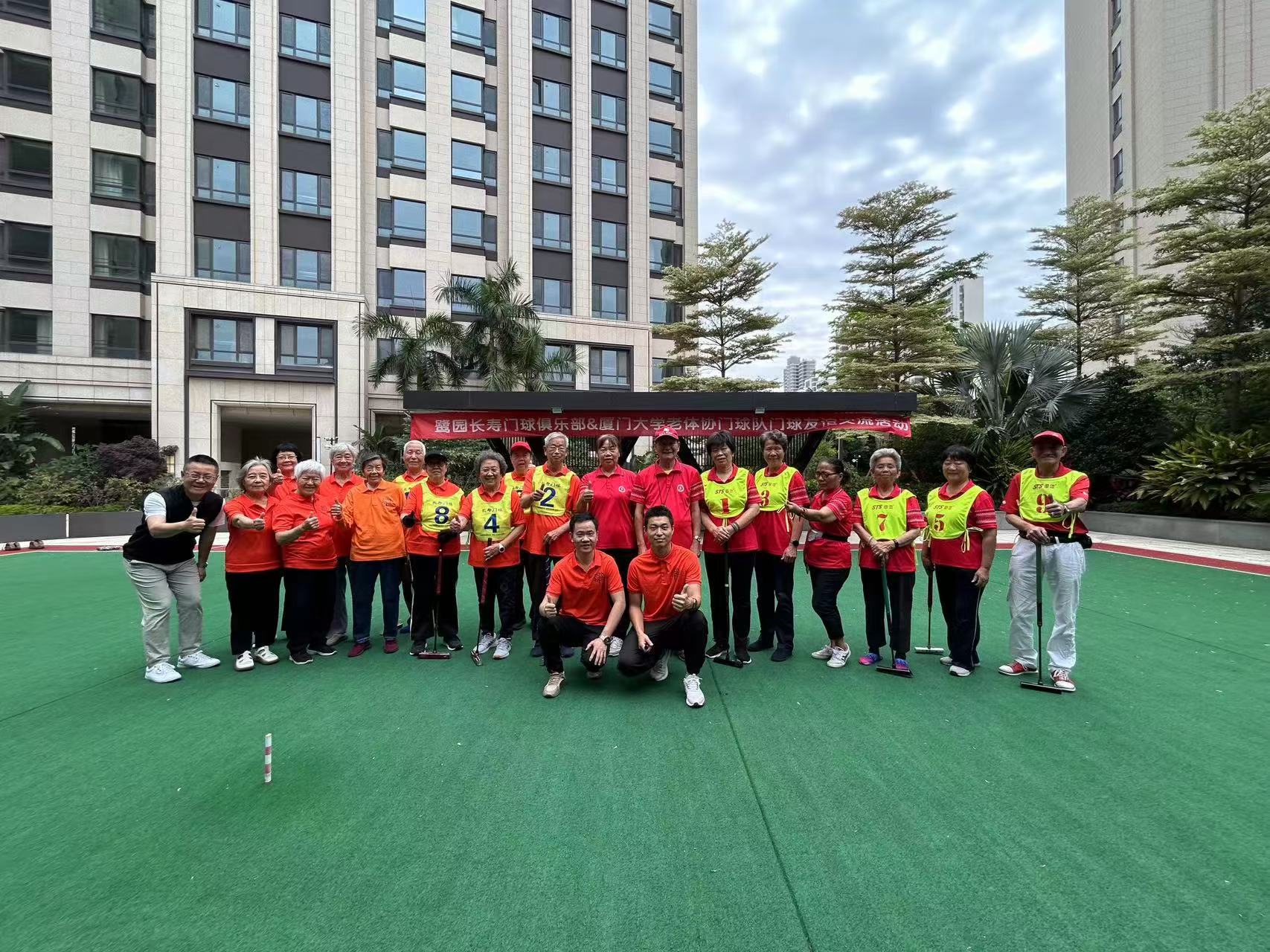 经离退休工作处与泰康之家鹭园社区沟通联系,2024年5月19日,校老体协门球队前往泰康之家鹭园开展以“趣味友谊”为主题的门球交流活动。