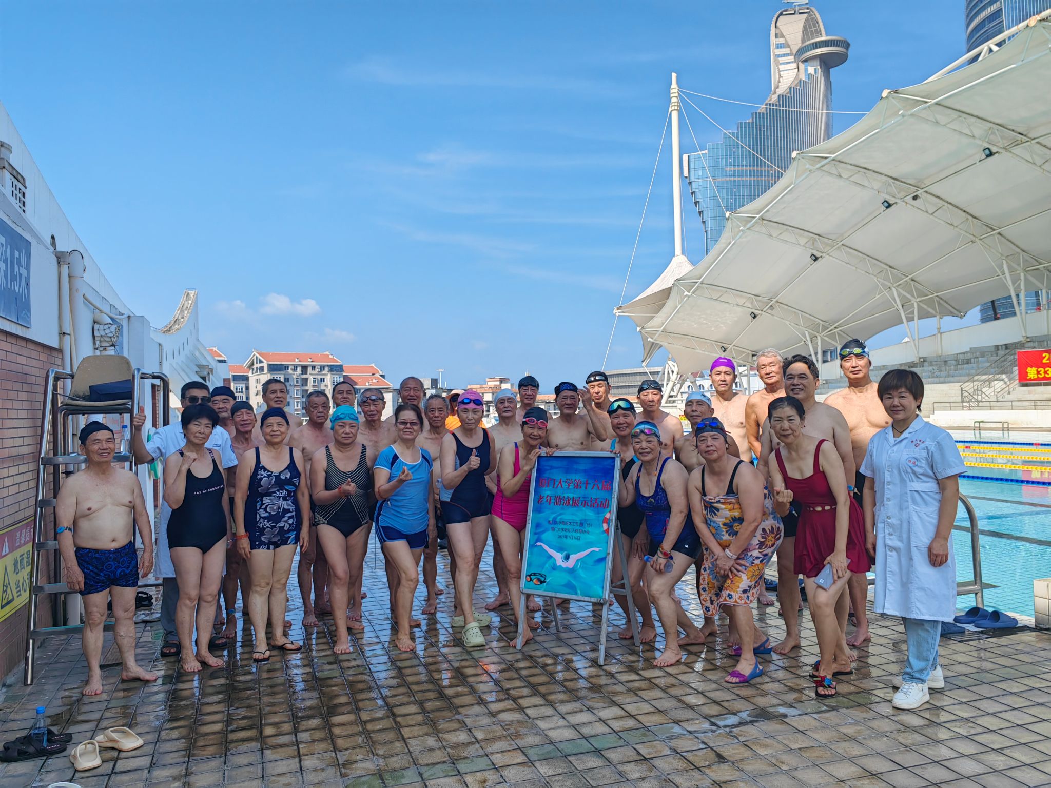 7 月 16 日上午,第十六届老年人游泳展示活动在王清明游泳馆顺利举行。活动由离退休工作部(处)主办,校老年人体育协会承办,40多位老同志参加。