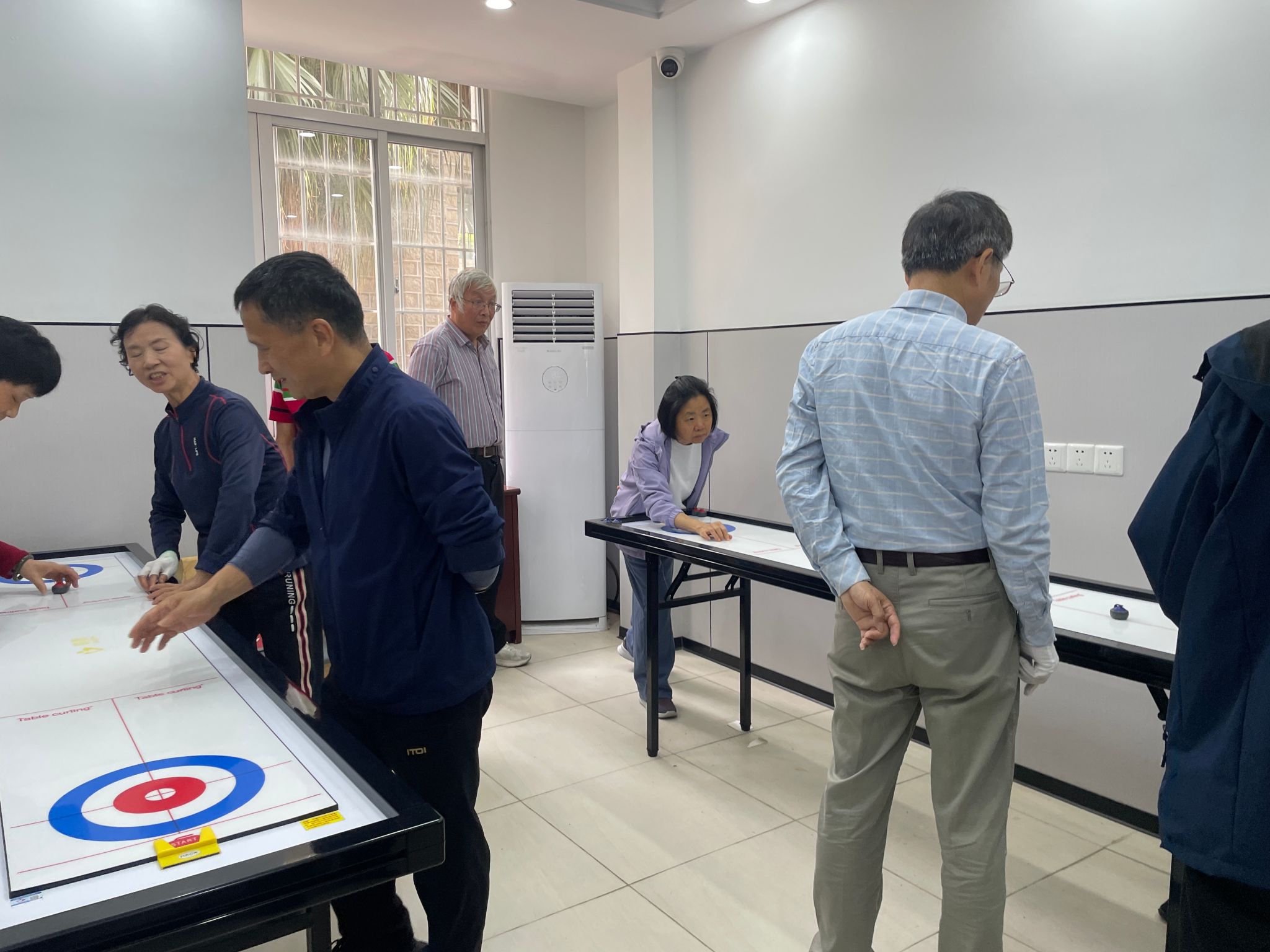 赛前,校老体协负责人详细讲解桌上冰壶球规则、投掷要领及安全事项,老教师们认真聆听、积极交流,迅速熟悉运动技巧。该项运动节奏舒缓、安全易学、趣味性强,适宜老年群体参与。比赛现场,老教师们精神矍铄、兴致高昂,分组轮番上阵。大家凝神专注、稳握冰壶、精准发力,冰壶在赛道上平稳滑行、巧妙走位,现场不时响起阵阵掌声与欢笑声。