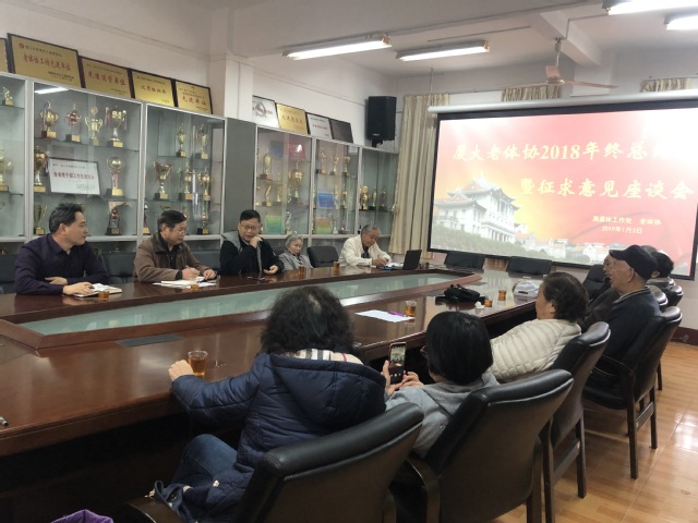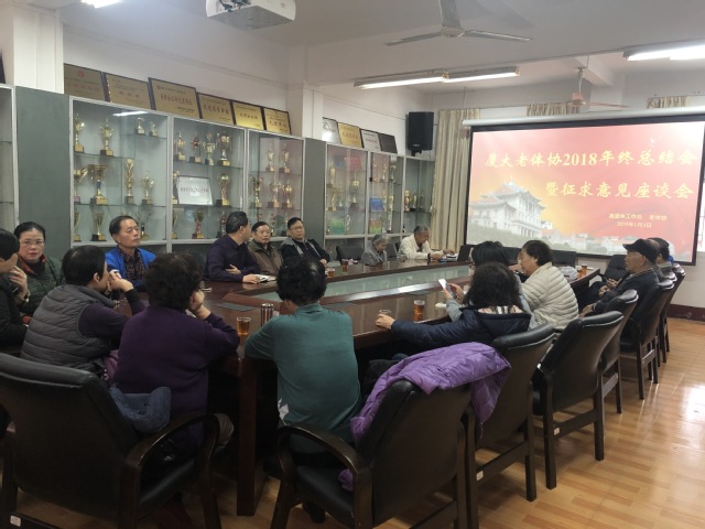 1月3日上午,厦门大学老体协在南光八208会议室召开“2018年终总结会暨征求意见座谈会”。校老体协执行主席、原厦门大学党委副书记、常务副校长潘世墨,离退休工作处处长戴岩,老体协副主席兼秘书长赵家琪,以及老体协委员及各项目队队长出席会议。离退休工作处副处长周一钦主持。