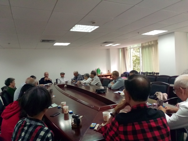 随后,老教授们相携着来到建文楼会议室座谈,教授们一边品尝着小点心,一边畅谈着当代大学生创新创业的强大动力和中国发展的勃勃生机。老教授们不时交流彼此的感受。谈笑风生,其乐融融。