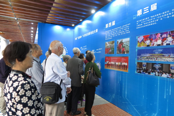 参观本次创业大赛的展板,仔细了解现在的大学生创新创新都在做什么