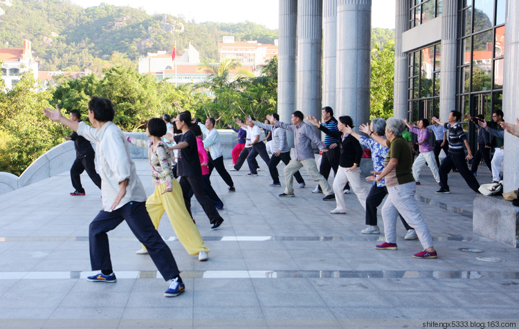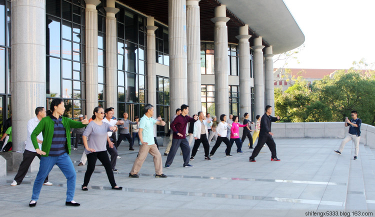 每个星期四的清晨,厦大老年大学杨氏太极拳班的45名学员,迎着晨曦,风雨无阻地来到学校科艺大楼前的平台上,开始了他们一周一次的太极拳课程学习。
