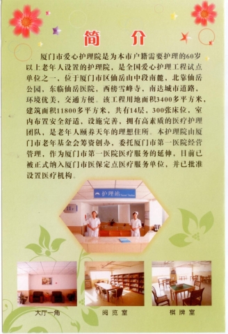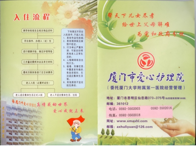 (注:此院要求入住老人的监护人必须在厦)