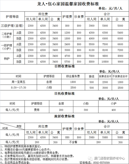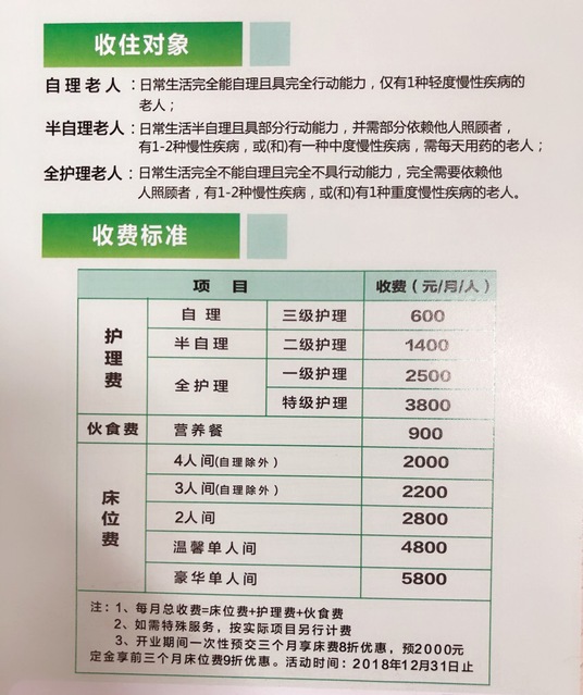 2.特需护理费用面议。若属临终关怀老人,每日增加特殊服务费用200元,若不满1个月入住的老人按实际入住天数结算。