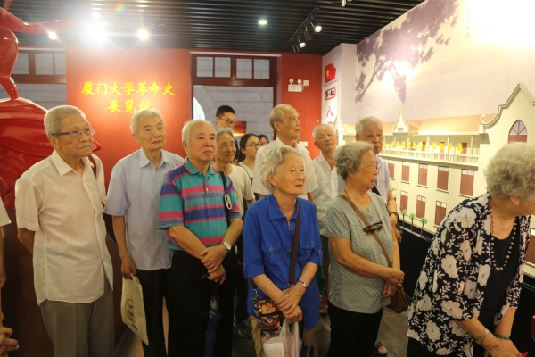 学习研讨结束后,在离退休处党支部全体成员、人文学院研究生共建党支部的中、青党员陪伴下,全体与会老党员来到位于厦门大学同安楼的革命史展览馆参观。许多老同志表示,回顾厦门大学革命史,于他们而言,是唤醒自己的红色记忆,重现战争年代铮铮岁月。看着墙上照片里熟悉的身影、面孔、名字,对切身经历的老同志们来说,更多的是缅怀期间被追围、被迫害的同学、同事、同胞的伤感。隔着照片与过去的时光对话,他们的记忆,比展厅的讲解词来得生动,来得详实,来得丰富,让一同参观的青年党员们如临其境,深有感触,受益匪浅。娓娓道来的鲜活革命事迹,让青年党员得以深刻地学习、继承和发扬厦门大学四种精神中罗扬才烈士的革命精神,深化“两学一做”学习教育,争做合格党员。