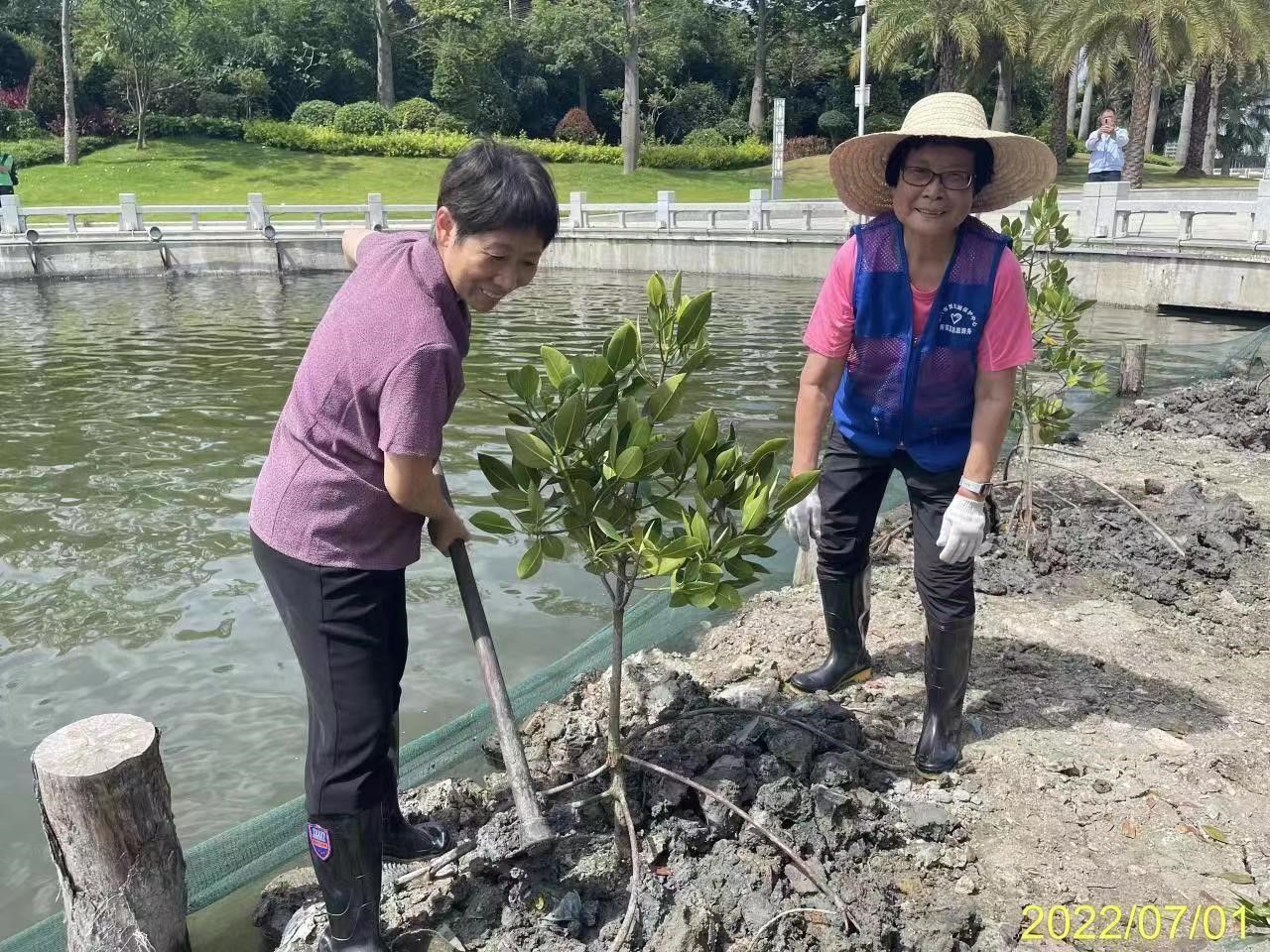 为庆祝中国共产党成立101周年,进一步继承和发扬我党优秀传统和作风,增强党组织凝聚力、创造力和战斗力,7月1日上午,我院退休教工党支部联合嘉庚学院环境学院发起组织了“庆祝党生日,种植红树林,美化筼筜湖”活动。厦门市原副市长、现厦门市教育基金会理事长潘世建、市政园林局总工王艳艳、筼筜湖保护中心主任魏道军、厦门市翔安区生态环境局副局长林智文等一行人以及我院退休教工党支部洪华生、袁东星、卢昌义等参加了活动,在筼筜湖畔种植红树林,以实际行动庆祝党的生日。