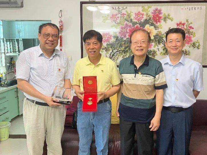 6月20日下午,航空航天学院党委书记王康平代表学院党委将“光荣在党50年”纪念章送到党龄达到50周年的退休老党员黄元庆教授家中。学院党委委员、仪器与电气教工党支部书记张建寰,退休教工党支部书记蔡建立,学院团委书记、关工委秘书沈鑫参加了走访活动。