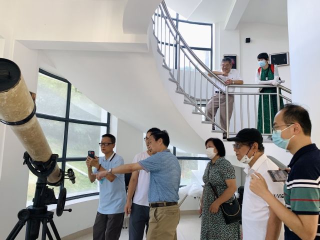 在天文台,老师们了解了天文系的历史和相关设备。其后的天文科普球幕观影让大家通过了解宇宙和恒星、行星的形成及演变过程,领略星空的灿烂和美丽,感受宇宙的浩瀚与神奇。
