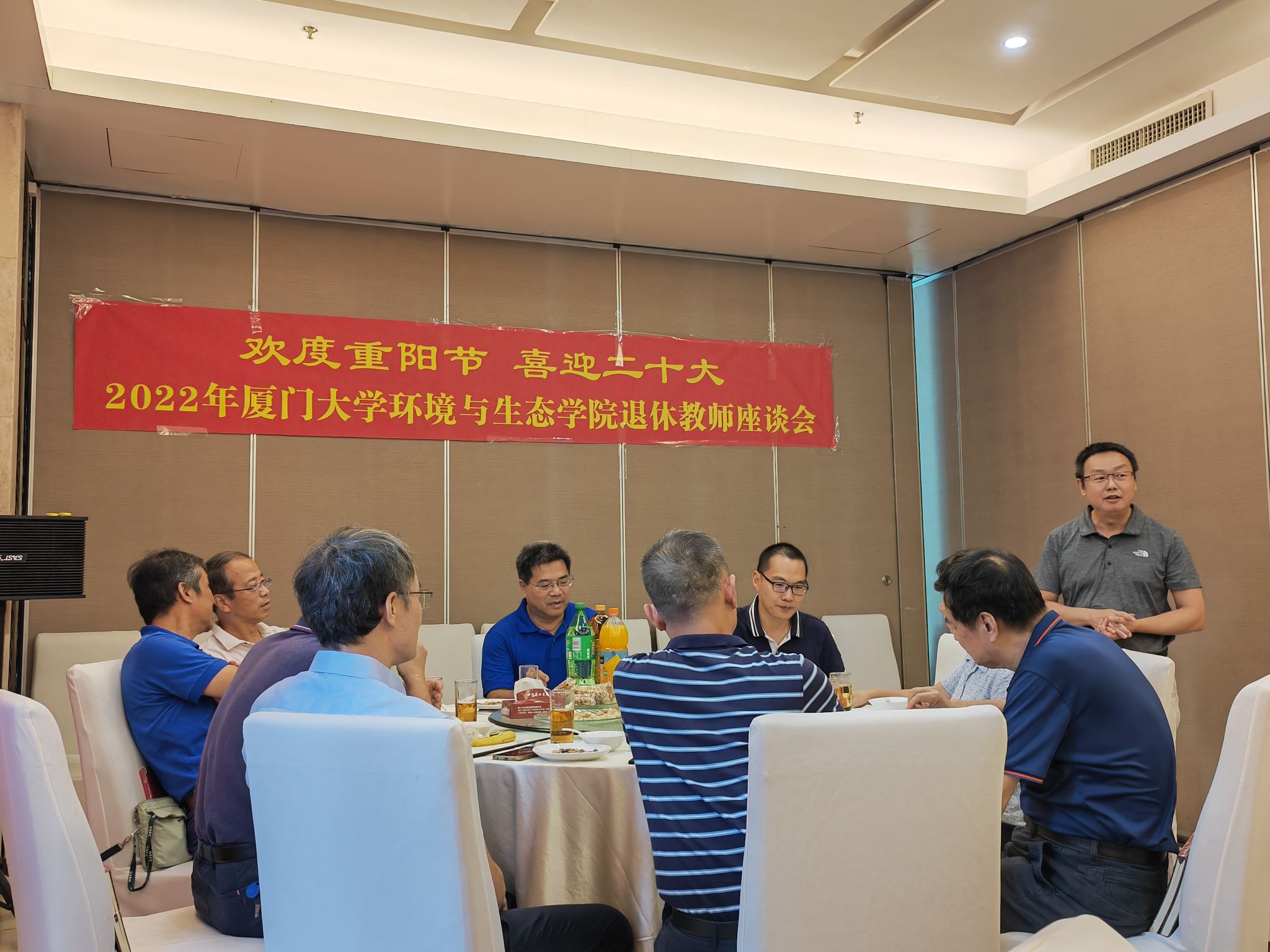 为迎接党的二十大胜利召开,传承和弘扬中华民族“尊老、敬老、爱老”的传统美德,10月7日中午,学院工会组织“欢度重阳节 喜迎二十大”座谈会。学院党委书记张明智、副书记刘莉颖、院工会委员等与学院退休教师们一起共度国庆重阳佳节,向老同志们送上节日的问候和祝福。
