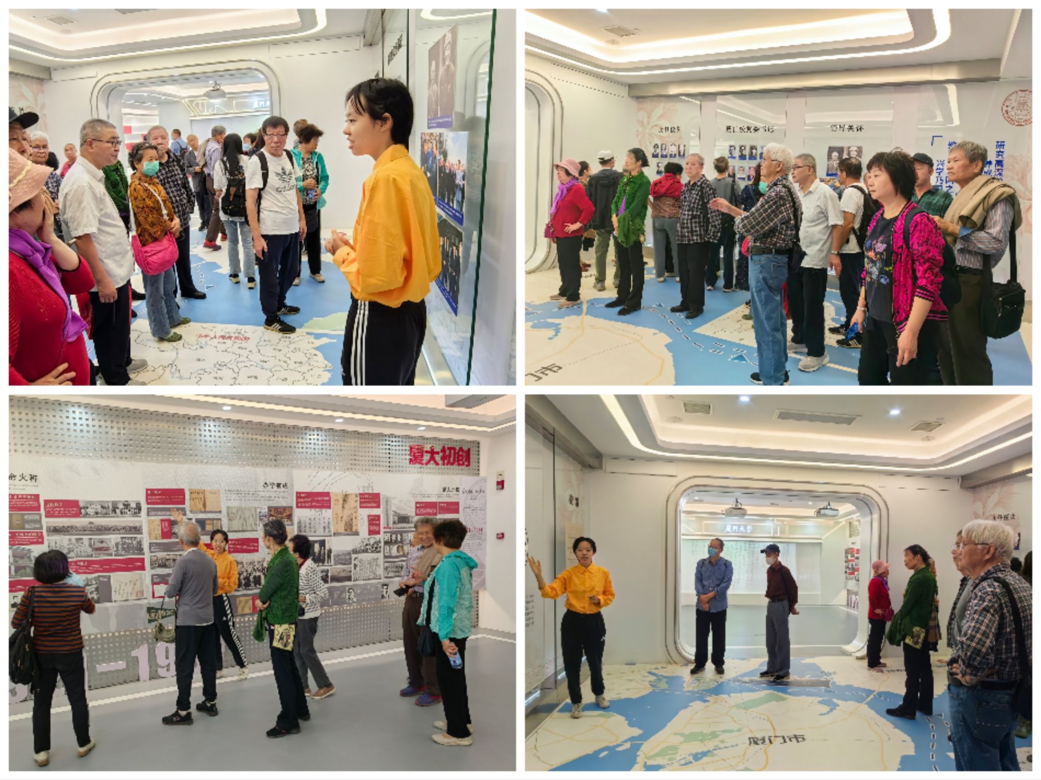 上午,退休教师一行首先来到翔安校区德旺图书馆十楼观景平台,讲解员为大家介绍了翔安校区的校内布局和周边环境,随后到德旺图书馆二楼参观翔安校区办学十周年成就展,老同志对学校发展的规模之大、速度之快纷纷点赞,展望厦大新百年心潮澎湃。