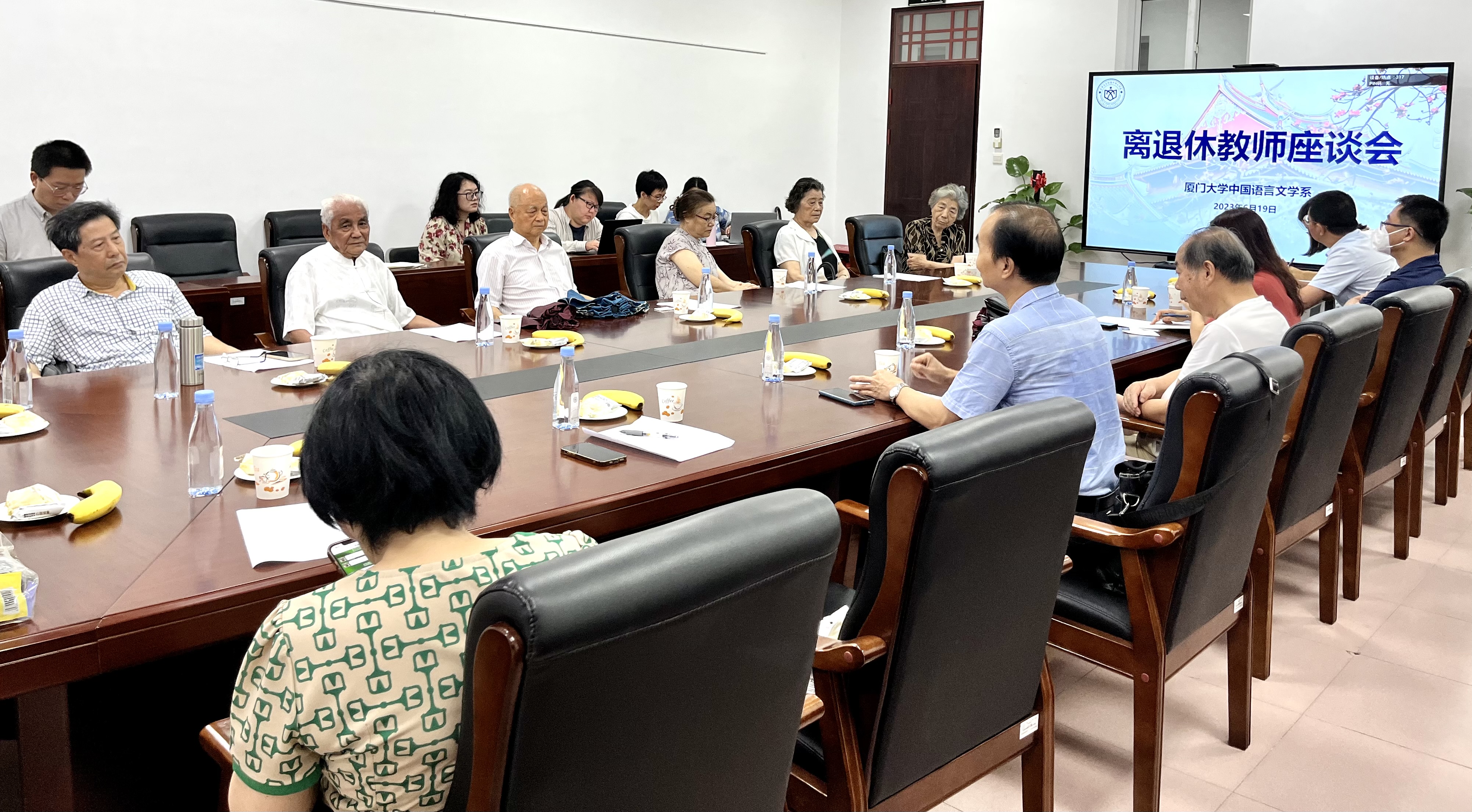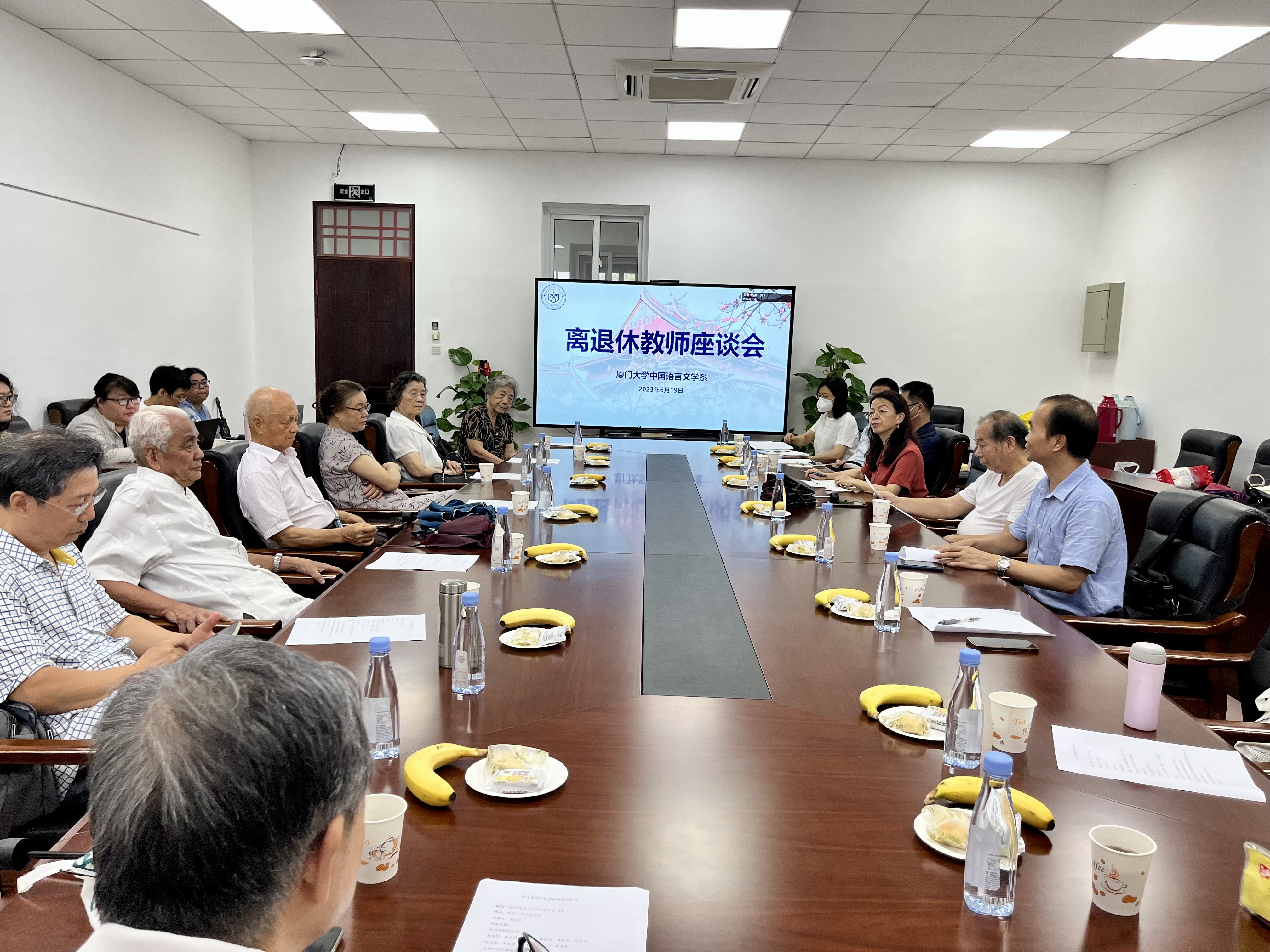 2023年6月19日下午,中国语言文学系于南光楼317会议室召开离退休教师座谈会。本次会议邀请到林事恒、周长楫、林宝卿、杨聪凤、林兴宅、俞兆平、林寒生、叶宝奎、朱水涌、林丹娅、黎兰等11位退休教师参加座谈,系领导班子成员、工会成员和行政人员参加了会议,工会主席苏永延副教授主持会议。