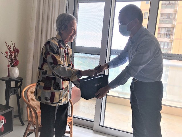 由于疫情防控工作不容松懈,加上多数退休老师行动不便,今年的重阳节由往年的集体庆祝改为上门慰问,图书馆精心为老寿星们挑选了慰问品并刻上老人的名字和图书馆的LOGO。接受慰问的老师们对图书馆领导的关心关怀深表感谢。