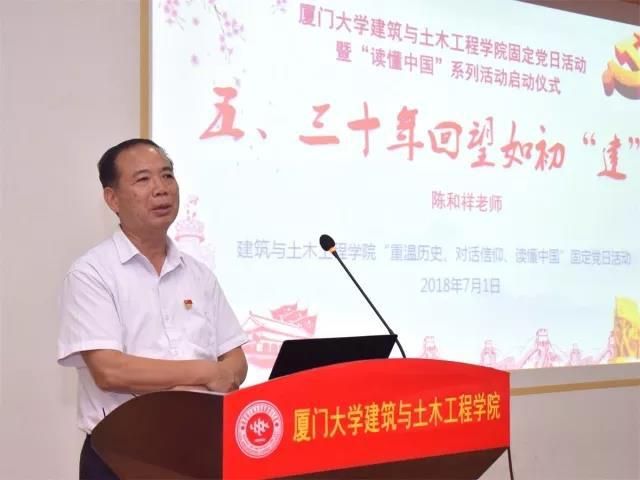 7月1日,建筑与土木工程学院举行“重温历史、对话信仰、读懂中国”固定党日活动暨“读懂中国”系列活动启动仪式。校关工委主任陈力文,建筑与土木工程学院党委书记刘梅,关工委副主任、特邀党建组织员陈和祥,校学生工作处(部)副处长王洁松,党委副书记王瑛慧、黄俊清、学院学工组的全体老师以及部分教师党员、学生党员出席此次活动。活动由2017级建筑系、规划系研究生党支部书记鲁黎主持。